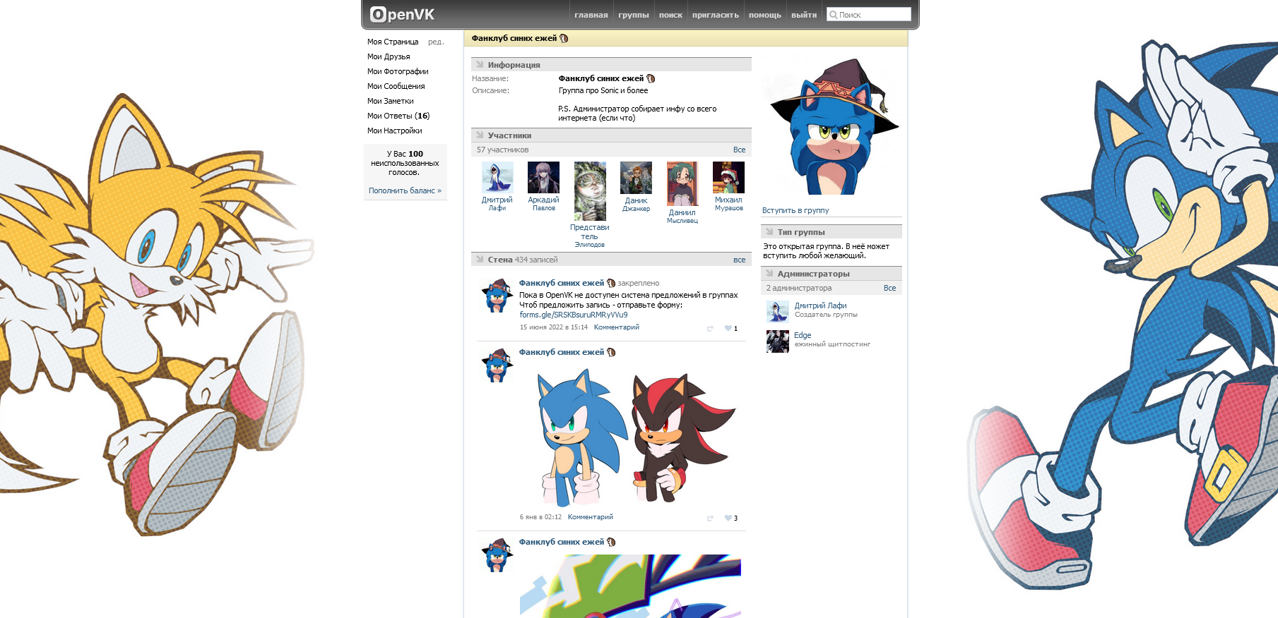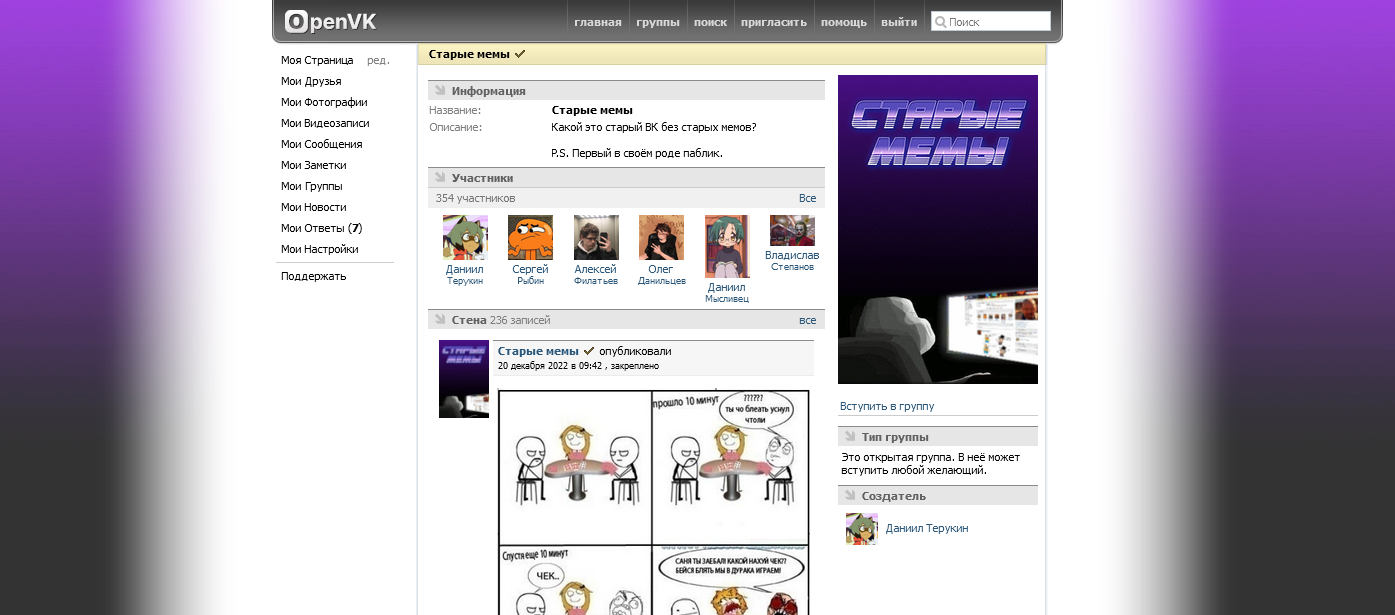 - Каждая группа имеет свой раздел вики-страниц, фотоальбомов, блок ссылок и обсуждений