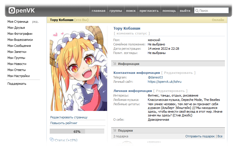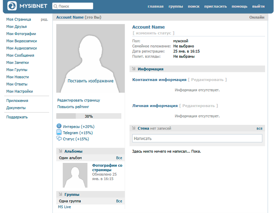 - Совет: Чтобы ваш профиль выглядел красиво и презентабельно, вы можете его заполнить какой-либо информацией или загрузить фотографию, которая подчеркнёт, например, ваш глубокий внутренний мир.