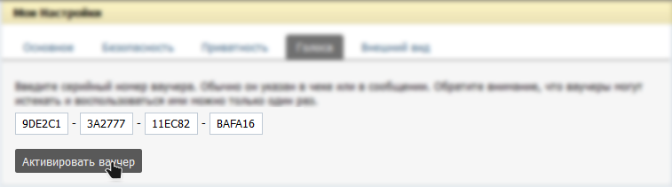 Внимание: После активации ваучера на вашу страницу, тот же самый ваучер нельзя будет активировать повторно